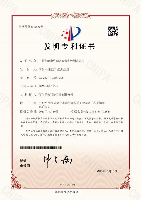 • 發明-一種聚酯簾線動態疲勞失效測試方法