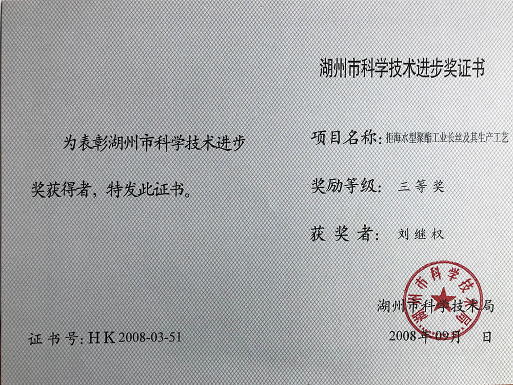 • 2008湖州市科技進步獎三等獎-劉繼權